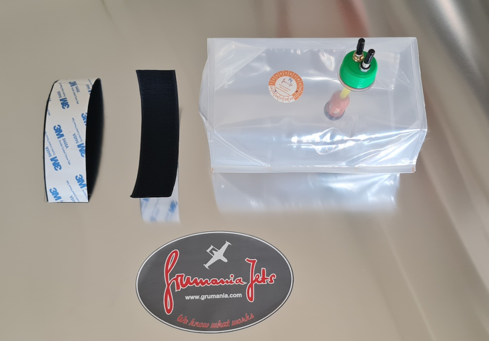 Der Tank hat unseren Gebrauchsmuster geschützten G-BAG Flansch mit Deckel und ist ausgerüstet mit unserem eigens entwickelten High flow Tankpendel und 4040 Tygonschlauch. Ausgeliefert wird er standardmäßig mit zwei Schlauchnippeln, (vorgesehen für 6 mm-Schläuche, Tygon oder FESTO) und mit selbstklebendem 3M Klettband, mit dem der Tank sicher auf der Plattform im Rumpf befestigt werden kann.